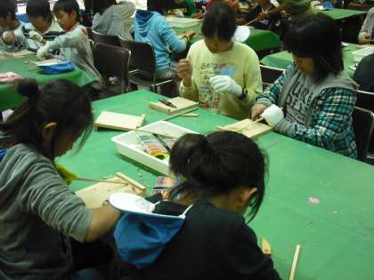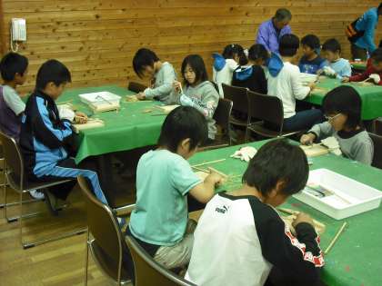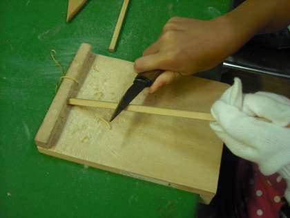竹を材料にMyおはしを作り始めました。小刀で竹を削っていくのですが,みんな小刀を使った経験があまりなく,悪戦苦闘をしています。さあ,うまく出来上がるでしょうか?楽しみです。