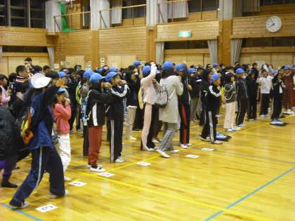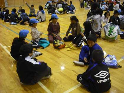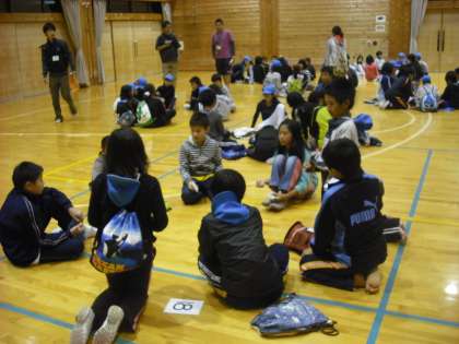 今回の山の家には旭丘中学校に進学する3校が一緒に来ています。活動の中には3校合同活動も含まれています。明日は交流の森でオリエンテーリングを行います。そこで,今日は顔合わせを行いました。じゃんけんゲームで和らいだ雰囲気の中,グループに分かれて自己紹介をしました。明日のオリエンテーリングも一緒に楽しく行うことができるでしょう。