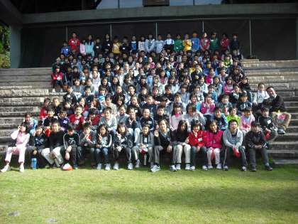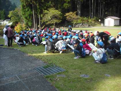 待鳳・鳳徳・鷹峯小学校の3校で合同オリエンテーリングの始まりです。昨夜の顔合わせで馴染んでいるのでスムーズにオリエンテーリングもスタートしました。