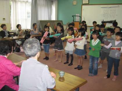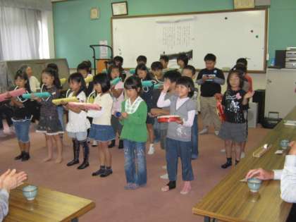 今日のすこやか学級は,2年生が音楽の時間に練習している合奏を聴いていただきました。すこやか学級の皆さんも,手拍子を取りながら聴いてくださいました。このあと給食も一緒に食べます。