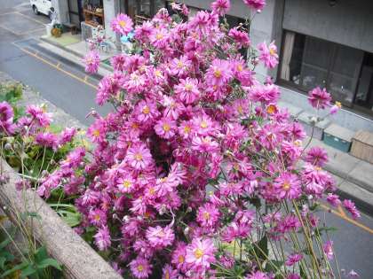 赤紫色のたくさんの秋明菊が満開です。別名貴船菊・鞍馬菊といわれるように山の家付近ではたくさん自生しています。秋,真っ盛りです。