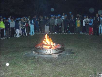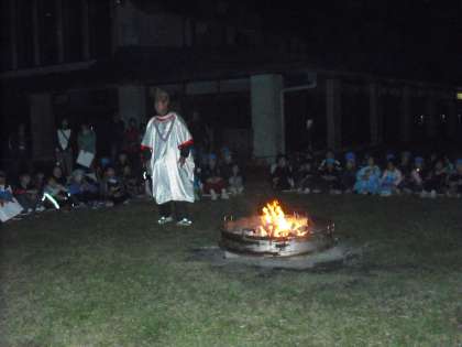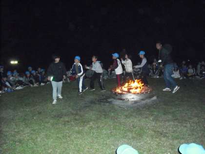 ゲームや歌が続く中,炎がだんだんと小さくなり,火の神が去るとキャンプファイヤーも終わりをつげました。