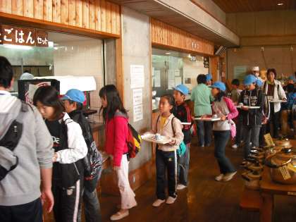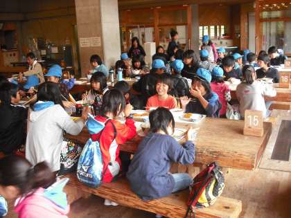 とうとう山の家での食事も最後になりました。昨日まではまだ泊まりたいと言っていた子どもたちも,今日は里心がついたのか,後ろ髪を引かれながらも早く帰りたそうにしています。