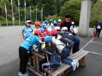 3校合同のチームで山の家施設にあるポイントを巡ります。