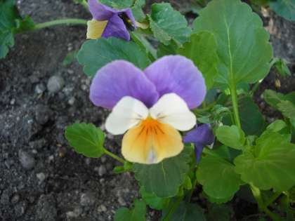 玄関前の花壇のパンジーやビオラが美しく咲いています。「花と緑の農芸財団」の『育てよう,花と緑,校庭に』−花の輪運動−でいただいた花です。