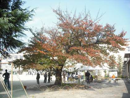 日ごとに紅葉が進んでいます。運動場では北少年補導委員会主催のソフトボール大会が行われています。