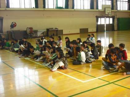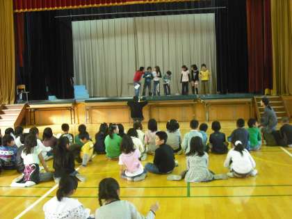 3年生は劇「そうべえごくらくへゆく」を演じます。体育館の舞台で場面ごとの練習をしています。
