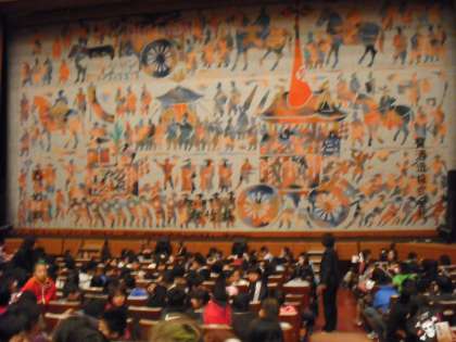 京都会館で行われた「京都市小学生演劇鑑賞教室」に行ってきました。演目は【こころの劇場 劇団四季のファミリーミュージカル 『嵐の中の子どもたち』】です。このミュージカルは子どもたちに友情の大切さを伝えたいとの思いから生まれたそうです。この舞台には友情の大切さはもちろんのこと,信じ合うこと,助け合うことの素晴らしさがあふれていました。子どもたちは本物のミュージカルに感動するとともに,人として生きていく上で何が大切かということも感じとったのではないでしょうか。