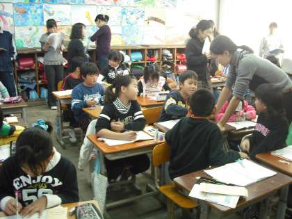 小数の単元は新学習指導要領(平成23年度完全実施)で4年生から一部おりてきた学習です。「はしたの大きさの表わし方を考えよう」という初めて出会う学習ですが,がんばって学習を進めました。