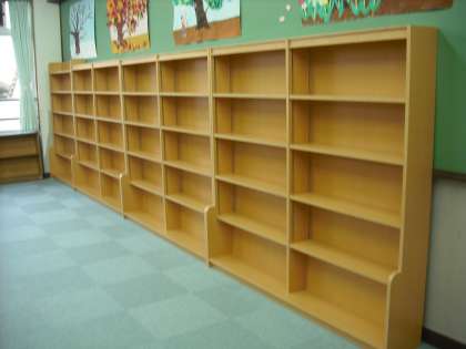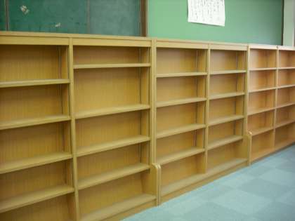 図書室の新しい書架がきました。そこで,しばらくの間,図書室を休館し新しく並び替えをします。今日は新しい書架と今まで使っていた中で使い勝手の良い書架を並べ替えました。来週から本を入れていきます。図書室の本が借りられませんが,もう少し待っていてください。