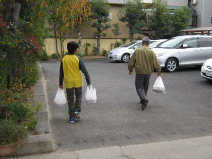 今月も,社会福祉協議会の皆さんにお世話になって,おいしいお弁当が出来上がりました。子どもたちのボランティアも一緒に配達します。