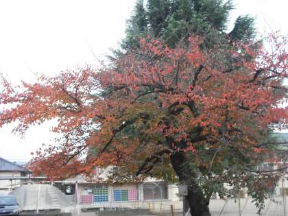 ソメイヨシノの紅葉が一段と鮮やかになってきました。また,紅葉と同時に落葉もたくさんになってきました。