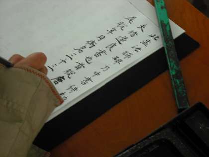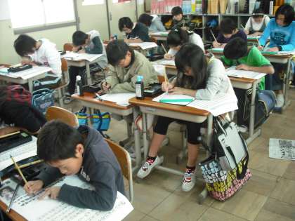 集中力が欠かせない小筆に挑戦です。中国,唐の時代の書家,褚遂良が書いた孟法師碑の一部を小筆で書いてみました。気持ちを落ち着かせて集中しなければ字が乱れてしまいます。みんな真剣に書いています。この気持ちを忘れずに学習に臨みましょう。