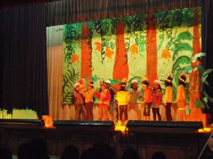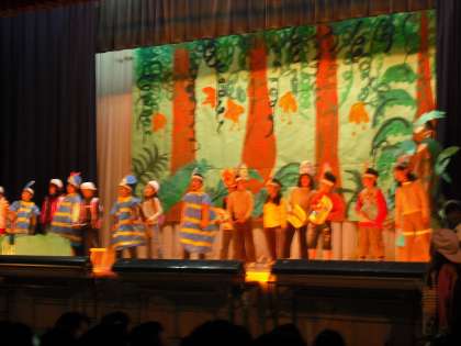 1年生は初めての学習発表会です。大きな声でしっかり,はっきりとセリフを言うことができました。かわいい演技と歌に,大きな拍手をいただきました。