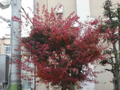モミジが赤く染まっています。種類や冷え込みの違いによってによって色は違いますが,深い紅もいいですね。