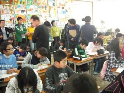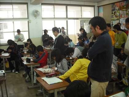 旭丘中学校校区の学校では,小学校・中学校のスムーズな接続を目指して小中・小小連携強化に取り組んでいます。それをHATTと呼びます。(Hは鳳徳,Aは旭丘,Tは待鳳と鷹峯です。)今日の午後,本校の6年1組で小中の授業交流の公開授業が行われました。子どもたちは難しい分数計算に,積極的に取り組んでいました。その後,小中の教員で事後の話し合いを持ちました。