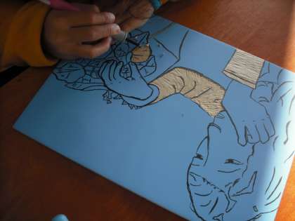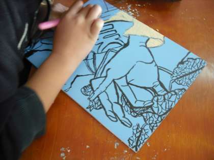 5年 図工 「版画 ほって刷って ほり進み木はんで」