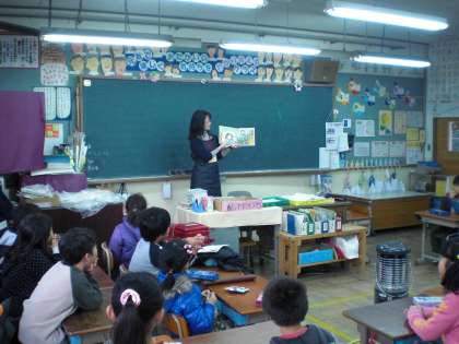 今日の読み聞かせは1組と3組でした。静かに集中して聞けました。