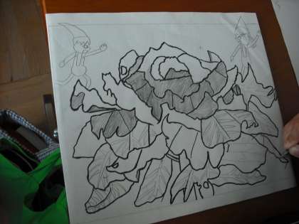 4年生は「葉ボタン」を題材にして下絵を描きました。版木に移しているところです。葉ボタンの葉の様子がうまく表現できていますね。