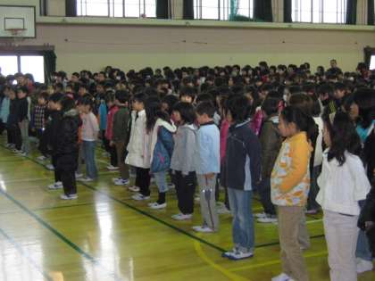 今日から授業再開です。雪で真っ白な運動場に,子どもたちも大喜びでした。朝会では学校長より,「平成23年は,今朝の運動場のように真っ白なページに,自分の成長の跡を残していこう。」という話と「春の七草・七草粥」の話,転入生の紹介がありました。来週から給食も始まります。生活のリズムを早く戻して,それぞれの学年のまとめをがんばりましょう。