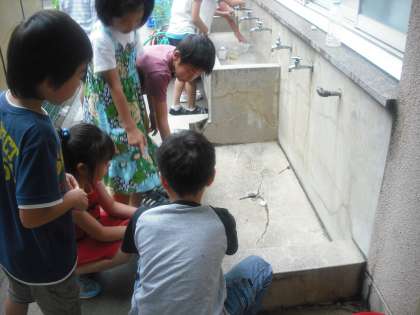 今日は「水のかさを調べよう」の学習です。操作活動を通して,デシリットルますを用いて,はしたの水のかさも量れることに気付かせます。