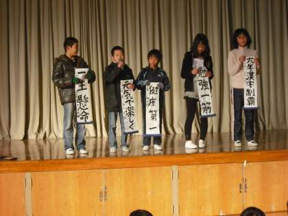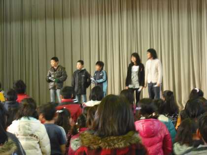 1月の児童集会が行われました。みんなで児童会の歌「虹の向こうに」を歌ったあと,今年の目標について発表しました。このあと,たてわり遊びです。