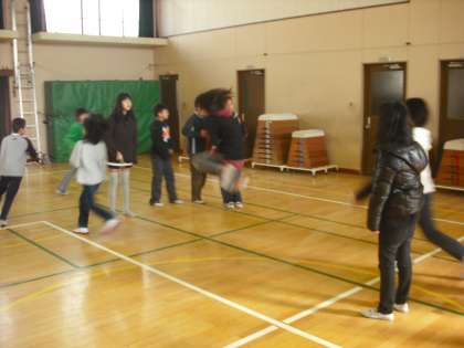 運動委員会主催の「大縄とび大会」,今日は6年生です。各クラスとも燃えています。白熱した競争の中,さすが6年生,418人が飛び1組が優勝しました。