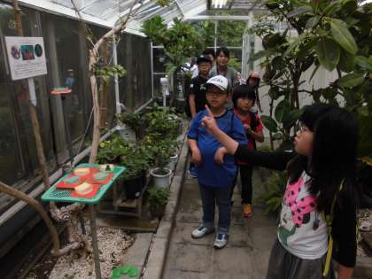 屋外の展示作品での学習,プラネタリウム学習,そのあとは低学年と高学年に分かれて,それぞれ室内での展示作品学習と実験学習をしました。