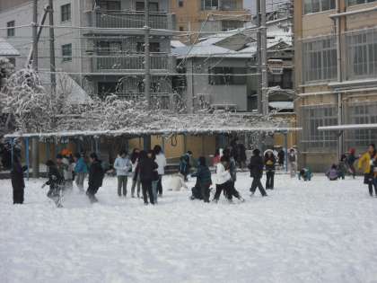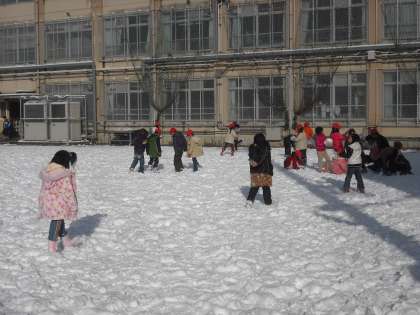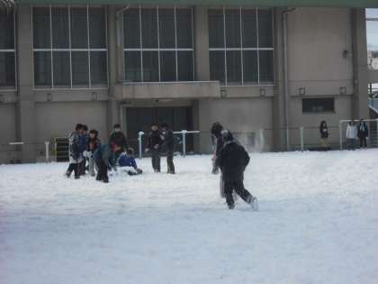 冬休み明けの7日にも雪は降ったのですが,すぐに溶けてしまいました。今日はたくさんの雪です。登校した子どもたちは雪遊びに夢中です。