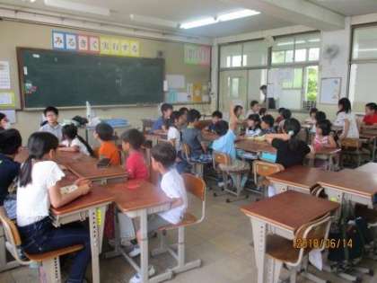6年生の新班長が1年生となかよし学級のお友だちを迎えにいきました。