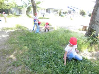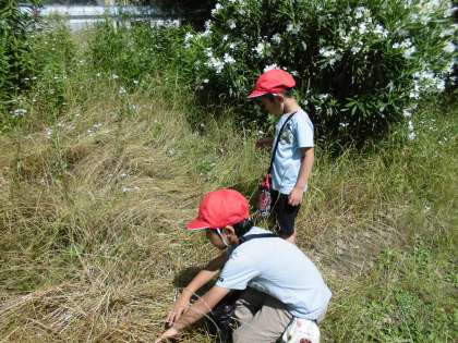 子どもたちはオオバコで草相撲をしたり,バッタを捕まえたり,とても楽しそうに活動していました。