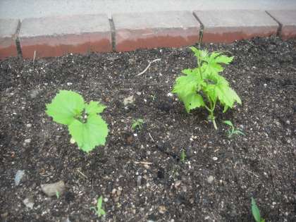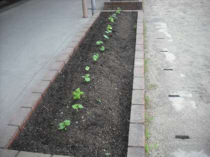 ツルレイシを花壇に植えました。これから成長を観察していきます。