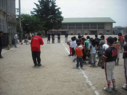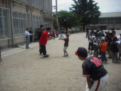 最後に遠投・ベースランニング・スピードガンの記録証とジュースをもらって終わりました。楽しい半日が過ごせました。お世話いただいた「おやじの会」のみなさん,「待鳳ドラゴンズ」のコーチの皆さん,ありがとうございました。