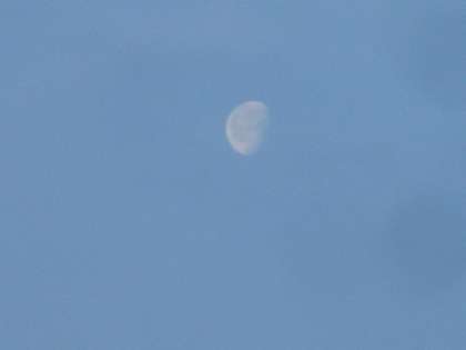 おはようございます。朝日が出る前に西の空に下弦の月が美しく見えています。
