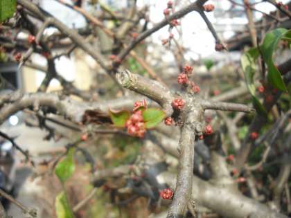 ボケの花のつぼみが少しずつ膨らんできています。寒いとはいえ,確実に春に向かっています。