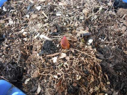 秋に鉢に植えたチューリップの芽が出始めました。何色のチューリップが咲くか楽しみですね。新一年生の入学式に体育館までの通路に並べられます。