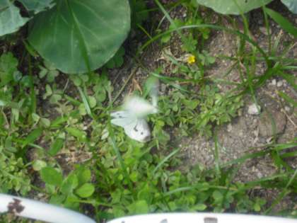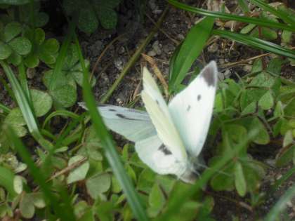 まったくの偶然です。中庭のキャベツのまわりを飛んでいたモンシロチョウを観察中に撮った写真です。