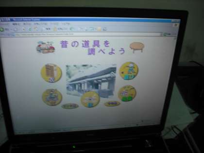 おじいさんやおばあさんが子どものころ使っていた道具を調べます。歴史資料室にもたくさんあるのですが,そのほかにはどんな道具を使っていたのか,インターネットで調べています。
