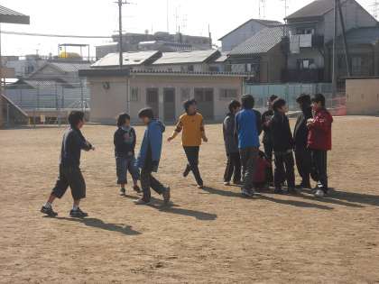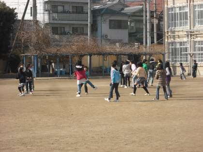 一昨日までの寒さがうそのように,空もスッキリ晴れ陽射しが降り注ぎ,暖かくなって春の気配が感じられます。この陽気に誘われるように,昼休みの運動場は子どもたちが集まってきています。