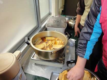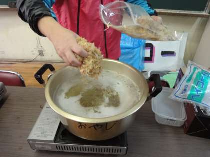 2月5日(土),明日,日曜日に実施する「うどんづくり}の準備をしています。だしをとってうどんつゆをつくり,おあげも炊いています。もちろん,うどんは手作りなので,一人分の粉も量っています。もちろん,粉は讃岐からしいれたもの,昆布は羅臼産です。