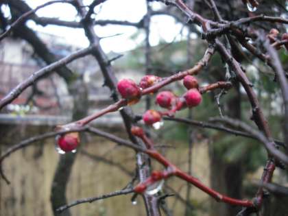 暖かい日が続いたせいか,つぼみが赤くふくらんできました。早く咲くといいですね。