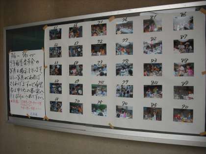 「学校お泊り会の写真掲示」