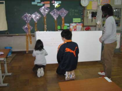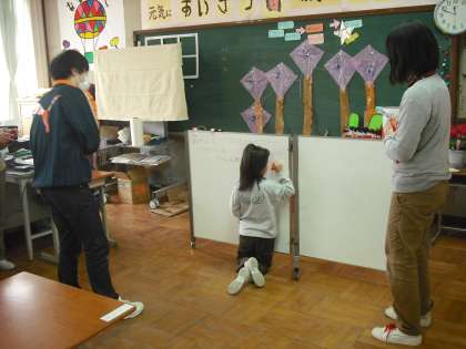 今日は京都教師塾の学生さんと一緒にしりとりゲームをしています。たくさんの言葉が出てきてなかなか終わりそうにありません。
