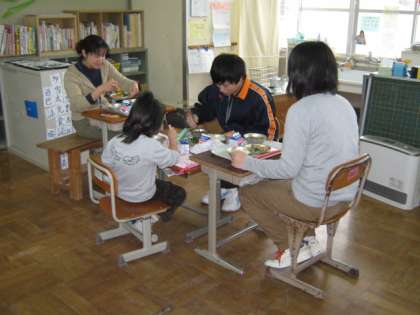 3・4校時の授業に引き続き,給食も教師塾の二人と一緒に食べました。いつもは先生と二人なので,今日はにぎやかな給食になりました。