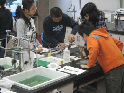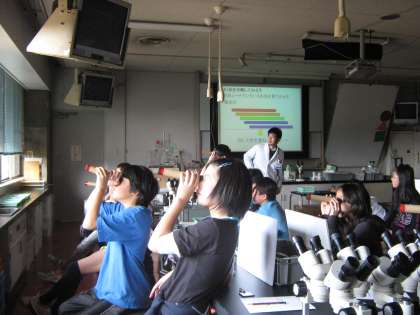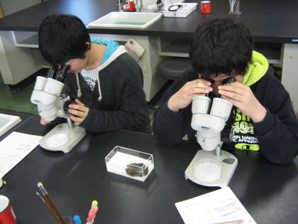 今日は科学センター学習です。1組は化学分野「電池でGO!」,2組は生物分野「水中の忍者〜忍法!分身の術!の巻」,3組は物理分野「光七変化」の実験室学習をしました。普段,学校ではなかなかできない実験をすることができました。科学の面白さに気づけたかな?