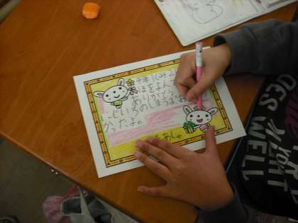 読書週間に4年生のお兄さん・お姉さんたちから読み聞かせをしてもらいました。そこで,お礼の手紙を送ることにしました。みんな心をこめて書きました。