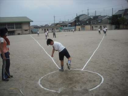 去年から始まった「新体力テスト」。今日は,ソフトボール投げ・立ち幅跳び・シャトルランに挑戦です。