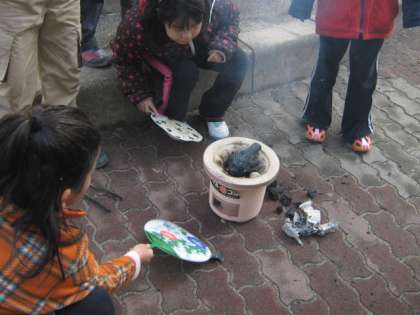 3年 昔の道具を使う—七輪での餅焼き1