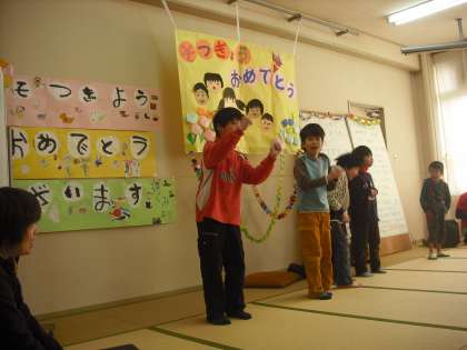 北上支部の育成学級のお友だちが集まって,まもなく卒業する6年生を祝って「合同お別れ会」を開きました。今年は北上支部では一人だけ卒業します。卒業するお友だちから中学校に進学して頑張ることを発表しました。また,支部のお友だちからプレゼントを頂きました。