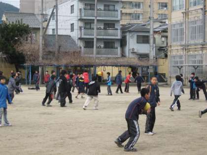 6年生卒業イベント「6年生にチャレンジ」は,今日で最終回,5年生とのドッジボール対決です。男女別でクラス対抗で対戦しました。なかなか白熱したゲームになりました。結果は,男子はどのクラスも6年生の圧勝,女子は2勝1引き分けで5年生の勝利でした。